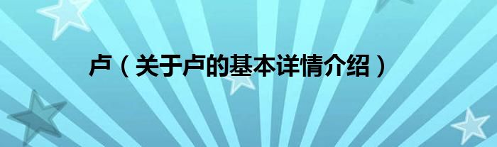 大家好我是小蝌蚪,卢,关于卢的基本详情介绍很多人还不知道,那么现在让我们一起来看看吧!