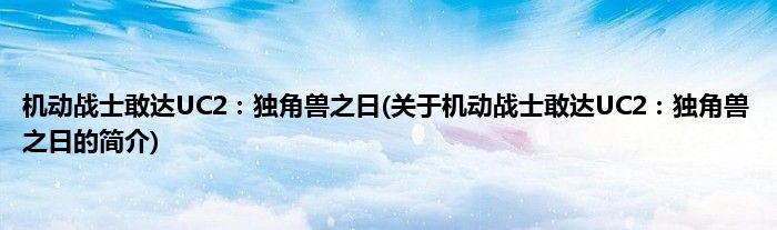 大家好,机动战士敢达UC2:独角兽之日,关于机动战士敢达UC2:独角兽之日的简介很多人还不知道,现在让我们一起来看看吧!