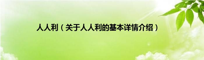 本文关于人人利的基本详情介绍就讲解完毕,希望对大家有所帮助。