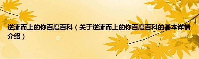 本文关于逆流而上的你百度百科的基本详情介绍就讲解完毕,希望对大家有所帮助。