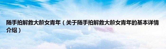 本文关于随手拍解救大龄女青年的基本详情介绍就讲解完毕,希望对大家有所帮助。