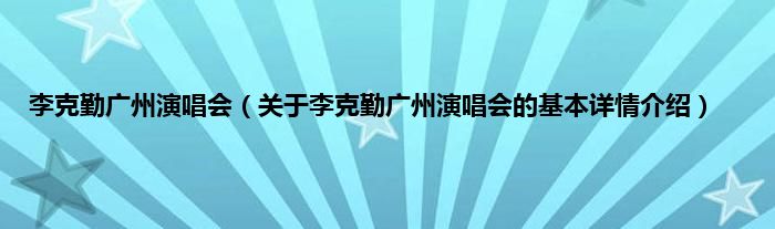 本文关于李克勤广州演唱会的基本详情介绍就讲解完毕,希望对大家有所帮助。