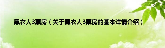 本文关于黑衣人3票房的基本详情介绍就讲解完毕,希望对大家有所帮助。