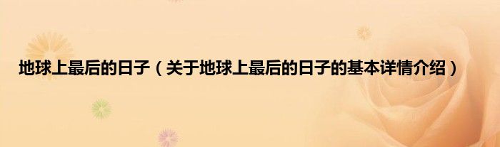 本文关于地球上最后的日子的基本详情介绍就讲解完毕,希望对大家有所帮助。