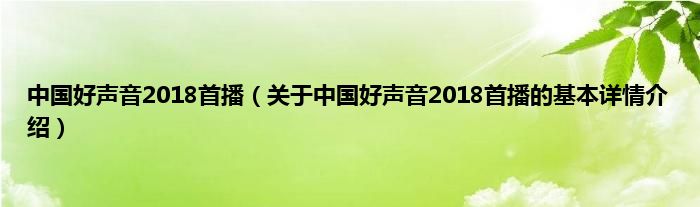 本文关于中国好声音2018首播的基本详情介绍就讲解完毕,希望对大家有所帮助。