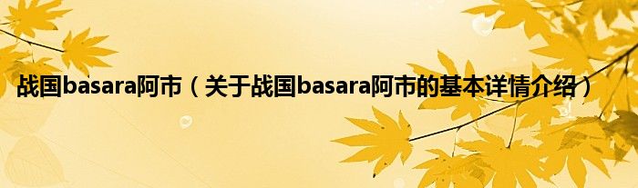 本文关于战国basara阿市的基本详情介绍就讲解完毕,希望对大家有所帮助。