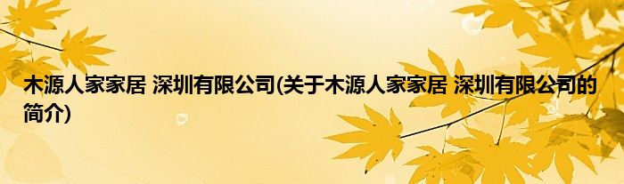 本文关于木源人家家居 深圳有限公司的简介就讲解完毕,希望对大家有所帮助。
