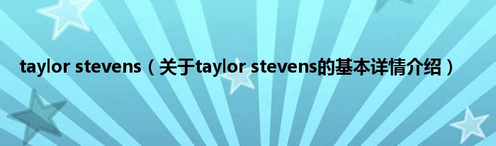 大家好我是小蝌蚪,taylor stevens,关于taylor stevens的基本详情介绍很多人还不知道,那么现在让我们一起来看看吧!