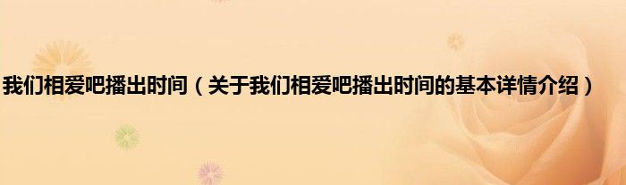 本文关于我们相爱吧播出时间的基本详情介绍就讲解完毕,希望对大家有所帮助。