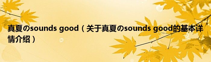 本文关于真夏のsounds good的基本详情介绍就讲解完毕,希望对大家有所帮助。