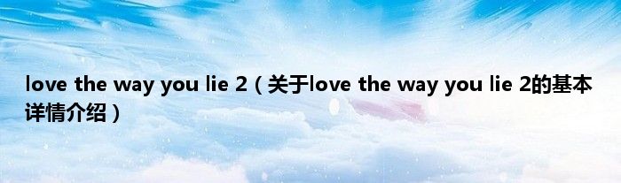 本文关于love the way you lie 2的基本详情介绍就讲解完毕,希望对大家有所帮助。