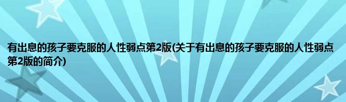 本文关于有出息的孩子要克服的人性弱点第2版的简介就讲解完毕,希望对大家有所帮助。