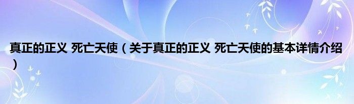 大家好我是小蝌蚪,真正的正义 死亡天使,关于真正的正义 死亡天使的基本详情介绍很多人还不知道,那么现在让我们一起来看看吧!