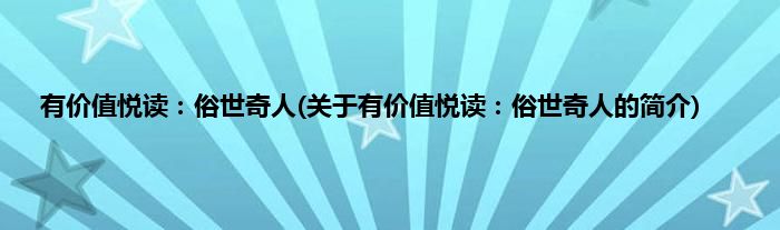 本文关于有价值悦读:俗世奇人的简介就讲解完毕,希望对大家有所帮助。