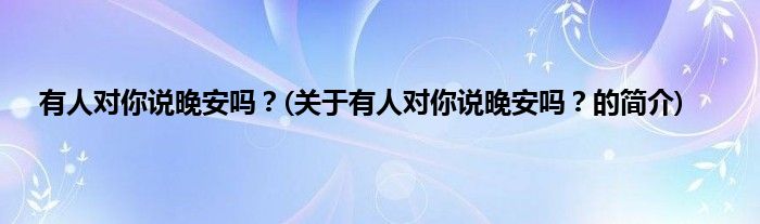 大家好,有人对你说晚安吗?,关于有人对你说晚安吗?的简介很多人还不知道,现在让我们一起来看看吧!