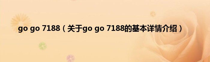 本文关于go go 7188的基本详情介绍就讲解完毕,希望对大家有所帮助。