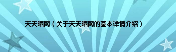本文关于天天晒网的基本详情介绍就讲解完毕,希望对大家有所帮助。
