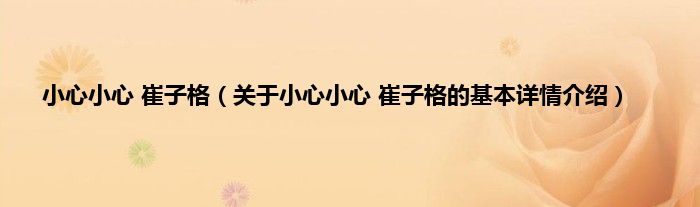 小心小心崔子格(关于小心小心崔子格的基本详情介绍)