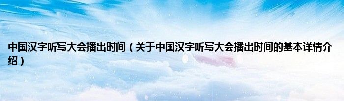 本文关于中国汉字听写大会播出时间的基本详情介绍就讲解完毕,希望对大家有所帮助。