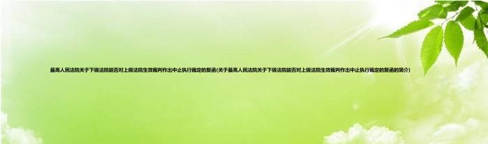本文关于最高人民法院关于下级法院能否对上级法院生效裁判作出中止执行裁定的复函的简介就讲解完毕,希望对大家有所帮助。