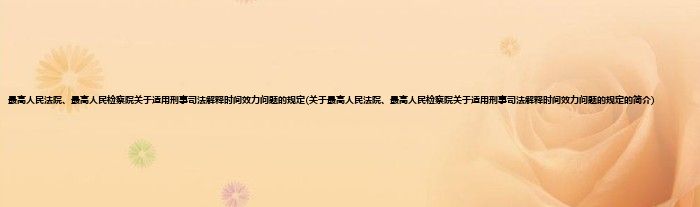 本文关于最高人民法院、最高人民检察院关于适用刑事司法解释时间效力问题的规定的简介就讲解完毕,希望对大家有所帮助。