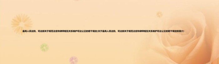 大家好,最高人民法院、司法部关于规范法官和律师相互关系维护司法公正的若干规定,关于最高人民法院、司法部关于规范法官和律师相互关系维护司法公正的若干规定的简介很多人还不知道,现在让我们一起来看看吧!