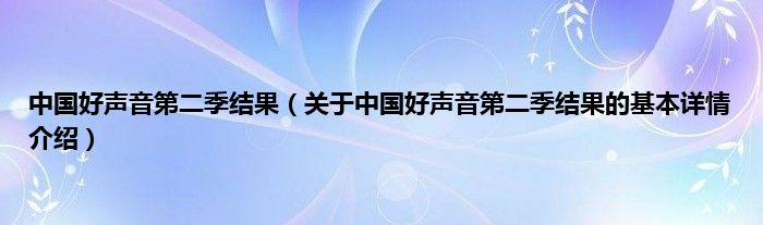 本文关于中国好声音第二季结果的基本详情介绍就讲解完毕,希望对大家有所帮助。