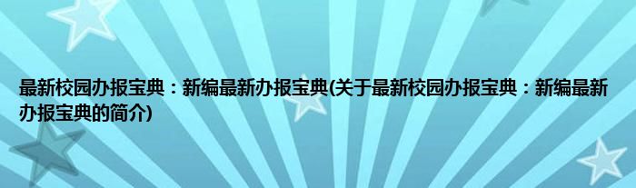 本文关于最新校园办报宝典:新编最新办报宝典的简介就讲解完毕,希望对大家有所帮助。