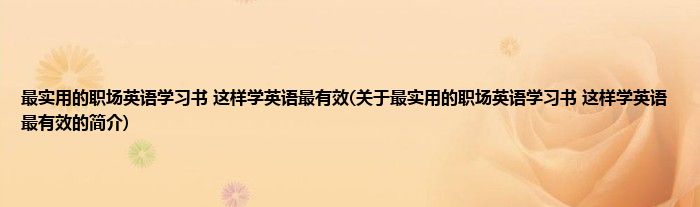 本文关于最实用的职场英语学习书,这样学英语最有效的简介就讲解完毕,希望对大家有所帮助。
