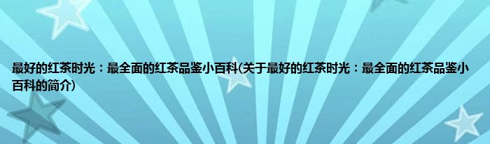 本文关于最好的红茶时光:最全面的红茶品鉴小百科的简介就讲解完毕,希望对大家有所帮助。