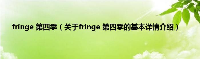 本文关于fringe 第四季的基本详情介绍就讲解完毕,希望对大家有所帮助。
