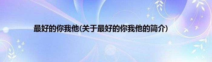大家好,最好的你我他,关于最好的你我他的简介很多人还不知道,现在让我们一起来看看吧!