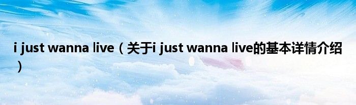 本文关于i just wanna live的基本详情介绍就讲解完毕,希望对大家有所帮助。