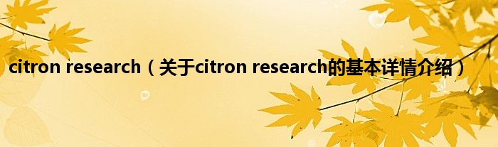 本文关于citron research的基本详情介绍就讲解完毕,希望对大家有所帮助。