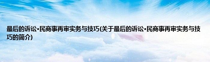 本文关于最后的诉讼·民商事再审实务与技巧的简介就讲解完毕,希望对大家有所帮助。