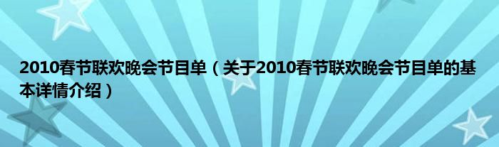 本文关于2010春节联欢晚会节目单的基本详情介绍就讲解完毕,希望对大家有所帮助。