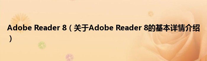 本文关于Adobe Reader 8的基本详情介绍就讲解完毕,希望对大家有所帮助。
