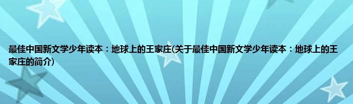本文关于最佳中国新文学少年读本:地球上的王家庄的简介就讲解完毕,希望对大家有所帮助。