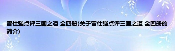 本文关于曾仕强点评三国之道 全四册的简介就讲解完毕,希望对大家有所帮助。