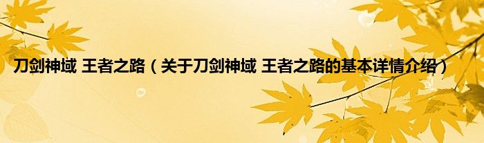 本文关于刀剑神域 王者之路的基本详情介绍就讲解完毕,希望对大家有所帮助。