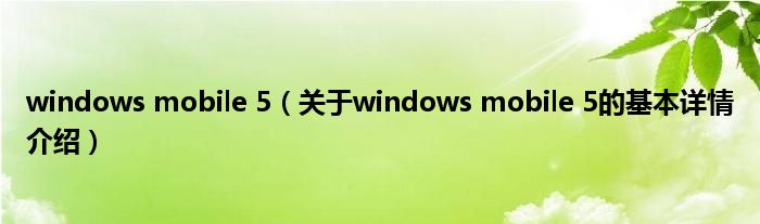 本文关于windows mobile 5的基本详情介绍就讲解完毕,希望对大家有所帮助。