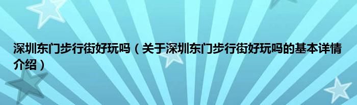 本文关于深圳东门步行街好玩吗的基本详情介绍就讲解完毕,希望对大家有所帮助。