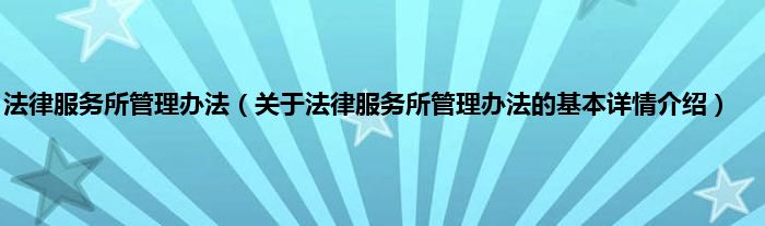 本文关于法律服务所管理办法的基本详情介绍就讲解完毕,希望对大家有所帮助。