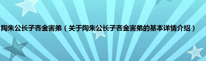 大家好我是小蝌蚪,陶朱公长子吝金害弟,关于陶朱公长子吝金害弟的基本详情介绍很多人还不知道,那么现在让我们一起来看看吧!