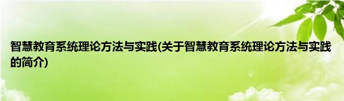 本文关于智慧教育系统理论方法与实践的简介就讲解完毕,希望对大家有所帮助。