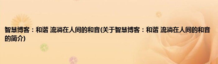 智慧博客:和谐 流淌在人间的和音(关于智慧博客:和谐 流淌在人间的和音的简介)