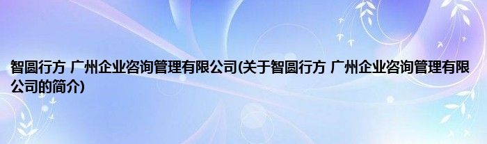 本文关于智圆行方 广州企业咨询管理有限公司的简介就讲解完毕,希望对大家有所帮助。