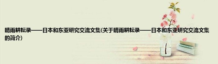 本文关于晴雨耕耘录——日本和东亚研究交流文集的简介就讲解完毕,希望对大家有所帮助。