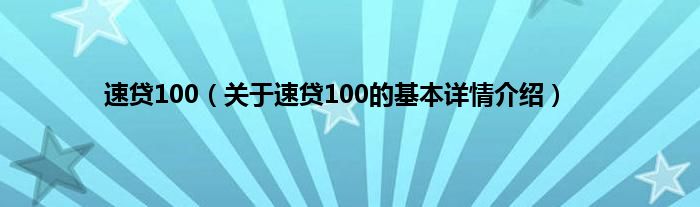 本文关于速贷100的基本详情介绍就讲解完毕,希望对大家有所帮助。
