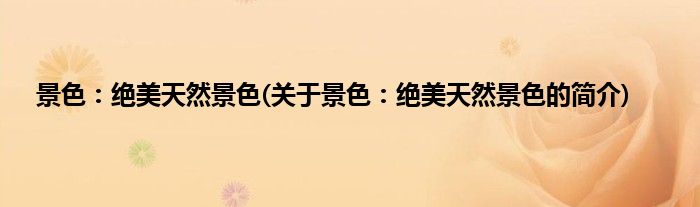 本文关于景色:绝美天然景色的简介就讲解完毕,希望对大家有所帮助。